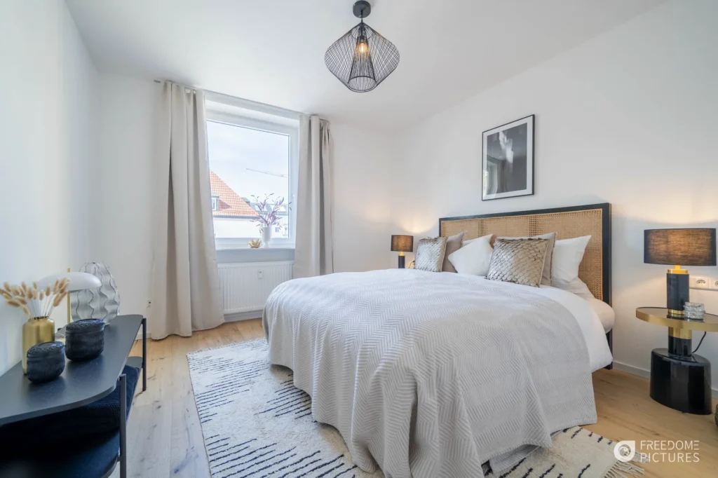 - Realismus durch HDR: Professionelle Technik fängt helle Fenster und dunkle Raumecken gleichermaßen gut ein.
